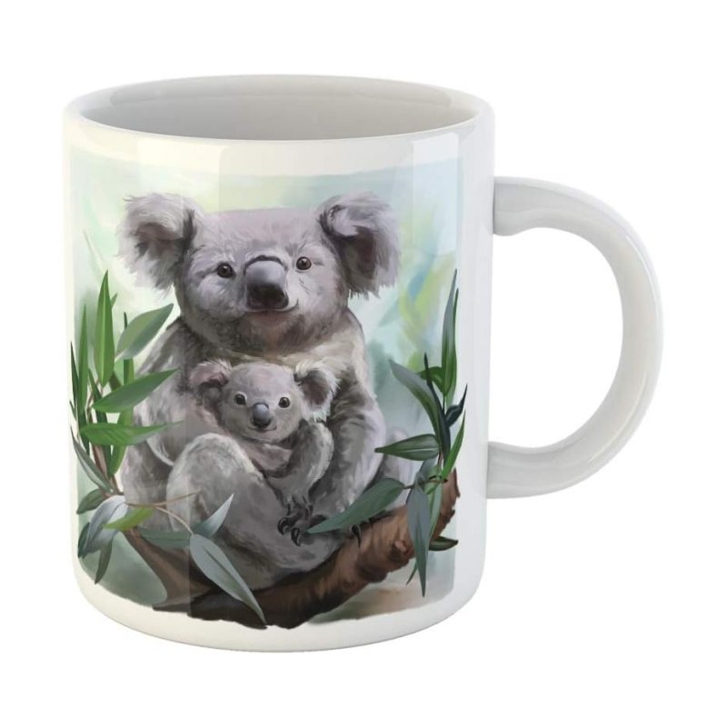 Custom Animal Koala and Her Baby Watercolor Painting Drawing Australia Ceramic Mugs