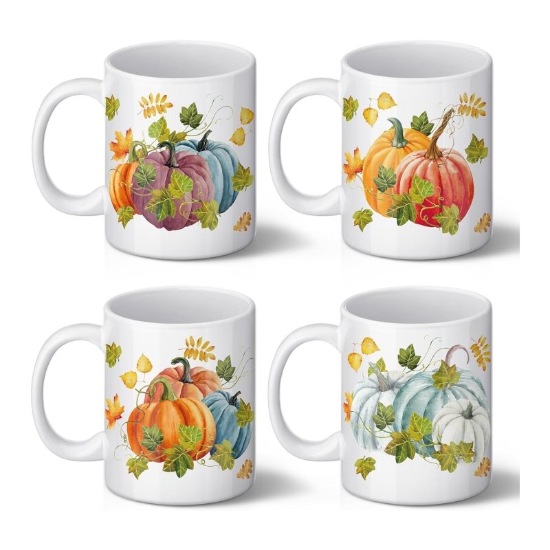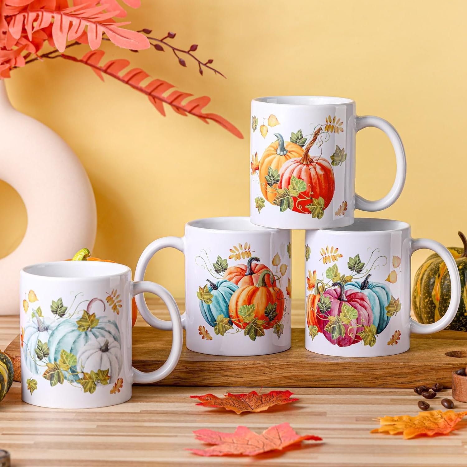 Custom Autumn Thanksgiving Ceramic Mug Orange and White Pumpkin Coffee Mugs