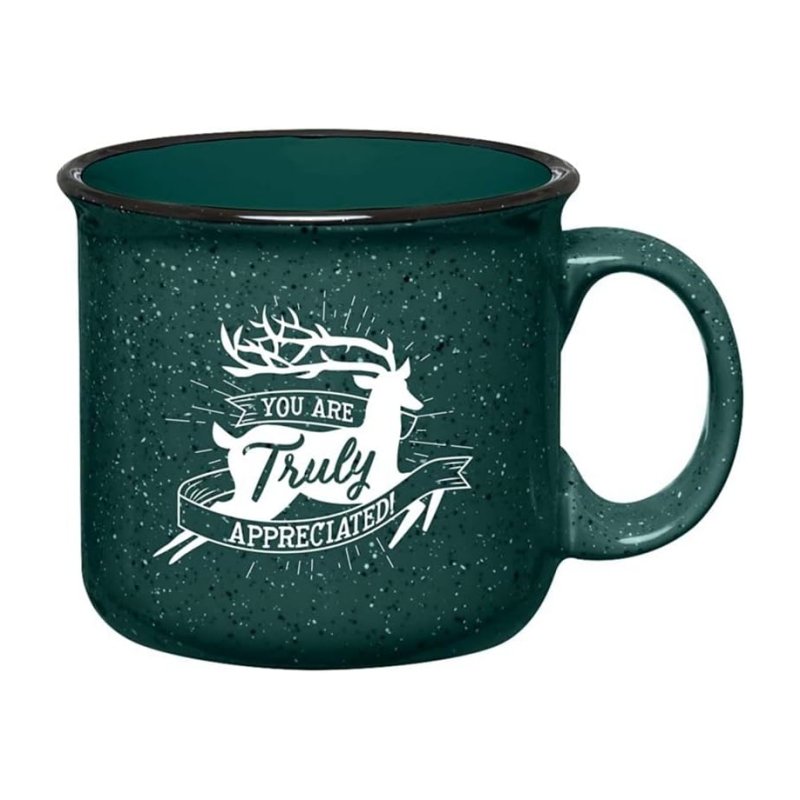 Custom Classic Campfire Ceramic Speckle Mug Green Mugs For Company Team Building
