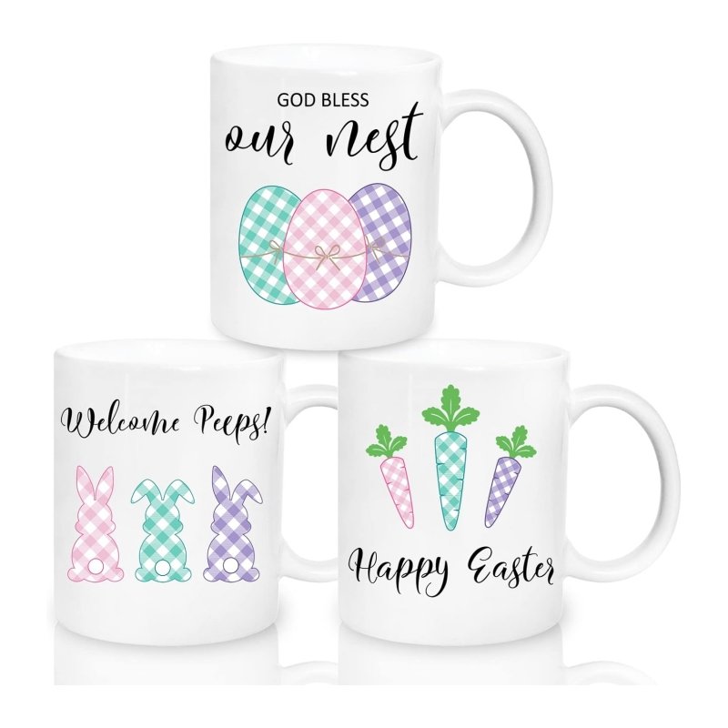 Custom Cute Easter Egg Bunny Carrot Coffee Mug White Ceramic Handle Mugs