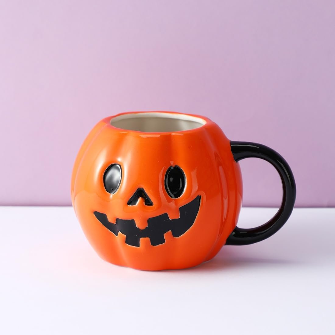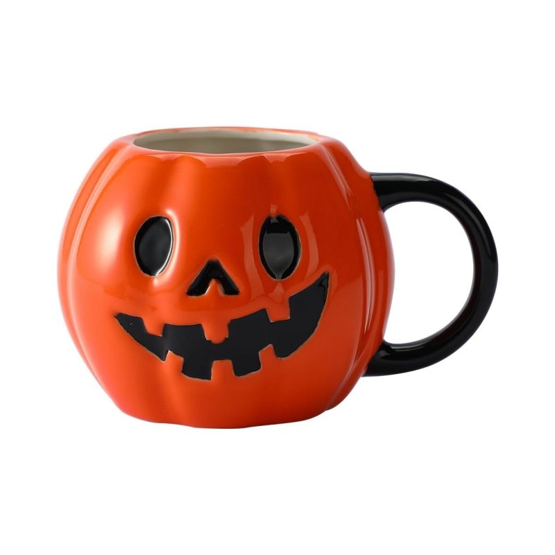Custom Halloween Series Pumpkin Ceramic Mug , Orange Coffee Mugs With Handle