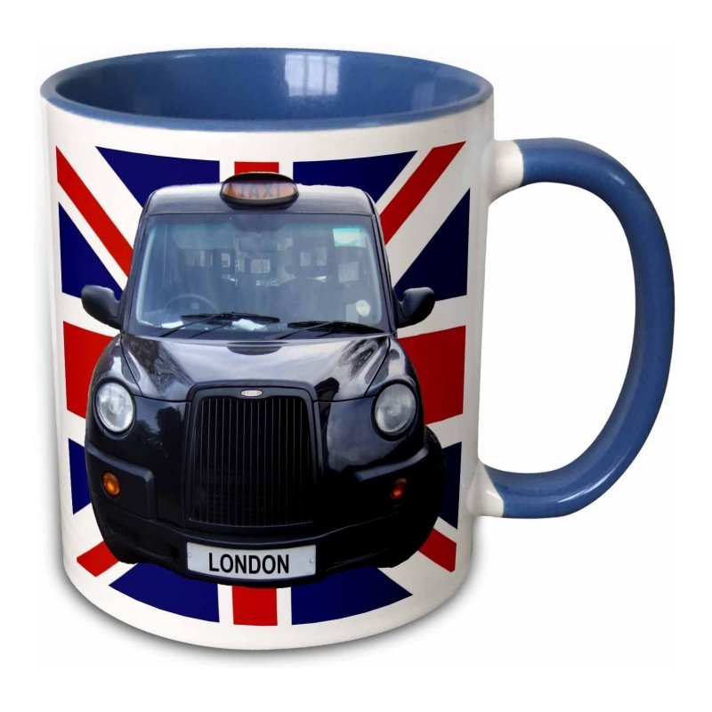 Custom London black Taxi Cab British Flag Background Mug Blue/White