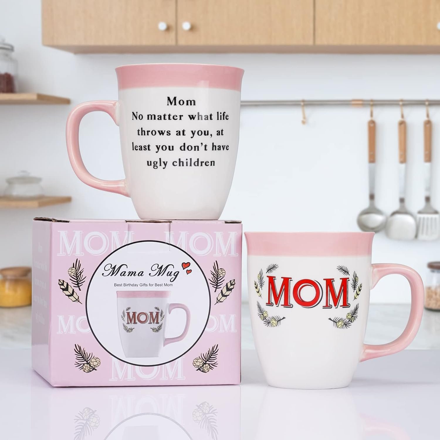 Custom Mothers day Ceramic Coffee Mug Pink Cone Shaped Mugs With Handle