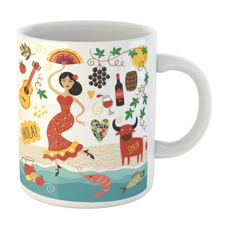 Custom Red Spain Landmarks and Symbols Foods Travel Mug Barcelona Ceramic Mugs