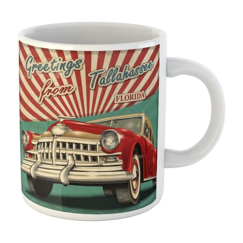 Custom Retro Car Tallahassee Mug Florida Travel USA Ceramic Mugs