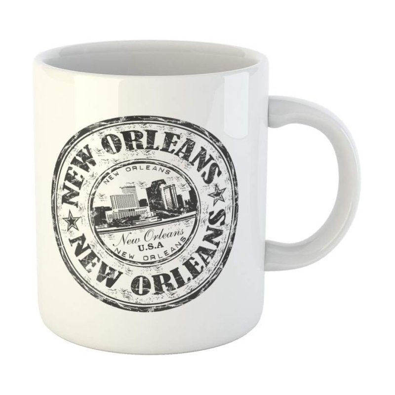 Custom Souvenir Coffee Mug Black Rubber Stamp the Name of City New Orleans Ceramic Mugs