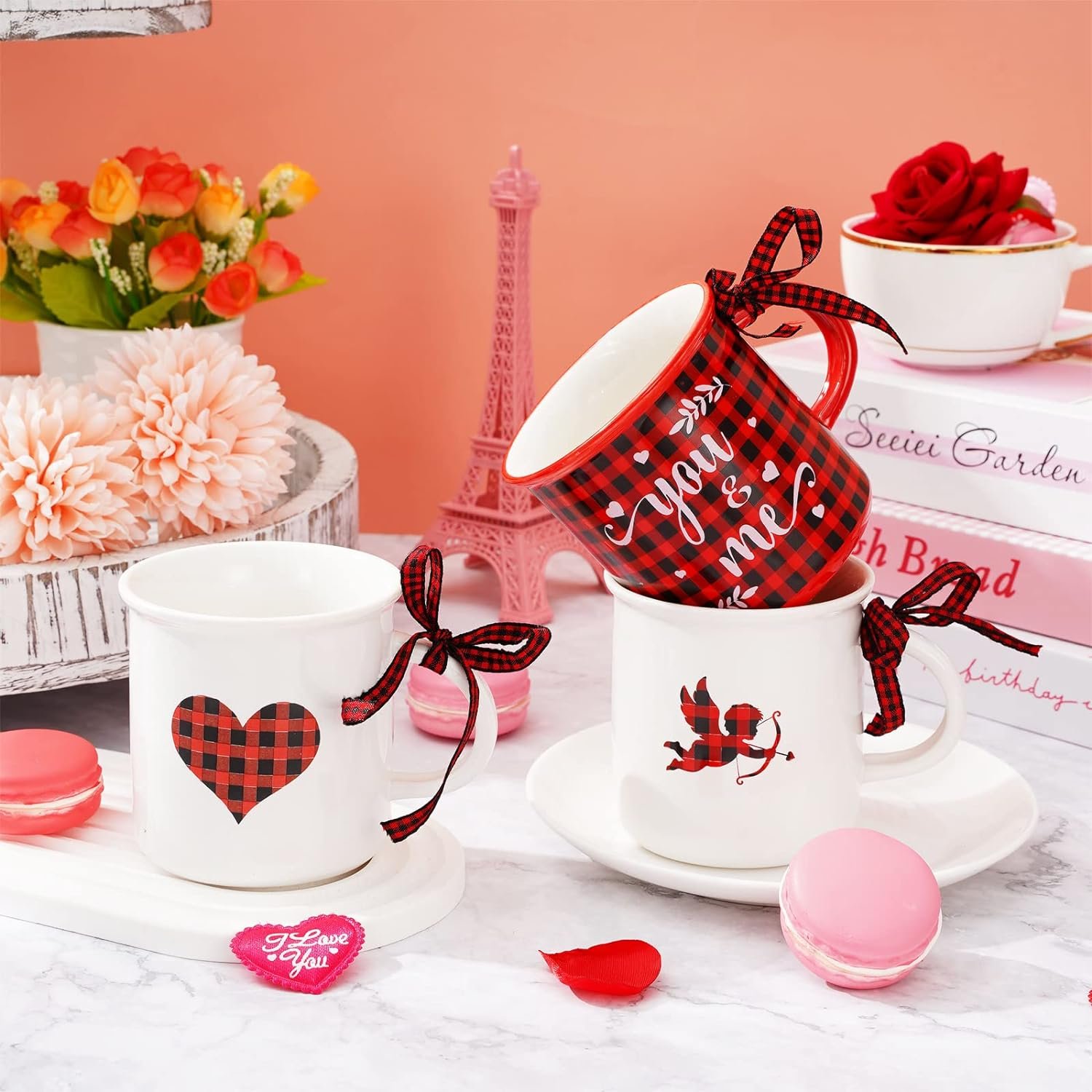 Custom Valentine’s Day Mini Coffee Mug with Ribbon Red Black Plaid Heart Truck Cupid Mini Mug