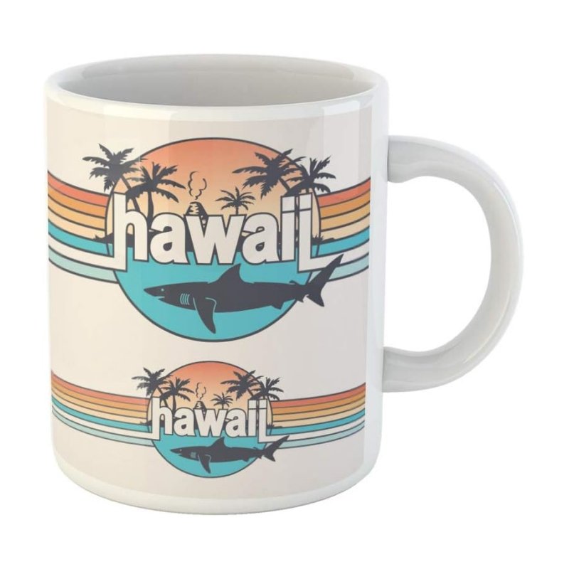 Custom Vintage Hawaii Shark Ceramic Tea Cup Mugs With Handle