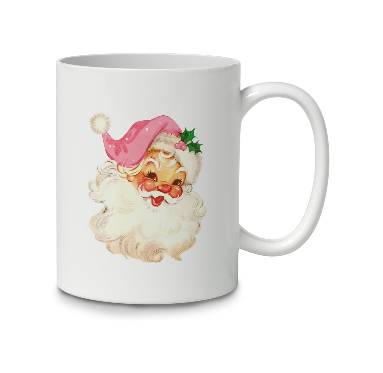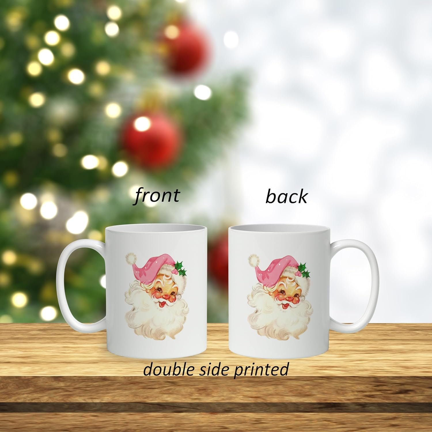 Custom Vintage Santa Coffee Mugs, Pink Christmas Ceramic Mugs With Handle