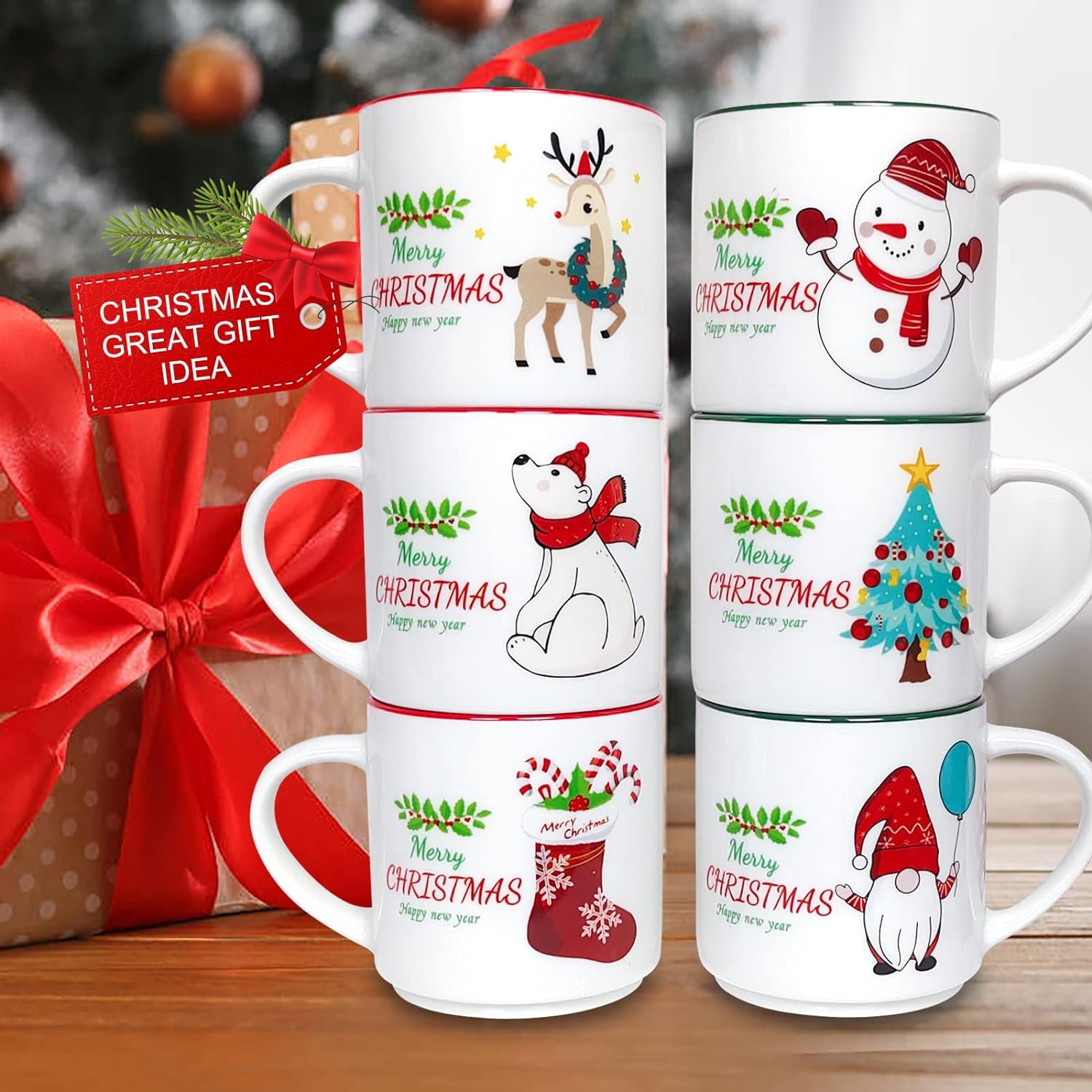Custom white Cute Ceramic Coffee Mug, Stackable Christmas Ceramic Mug With handle
