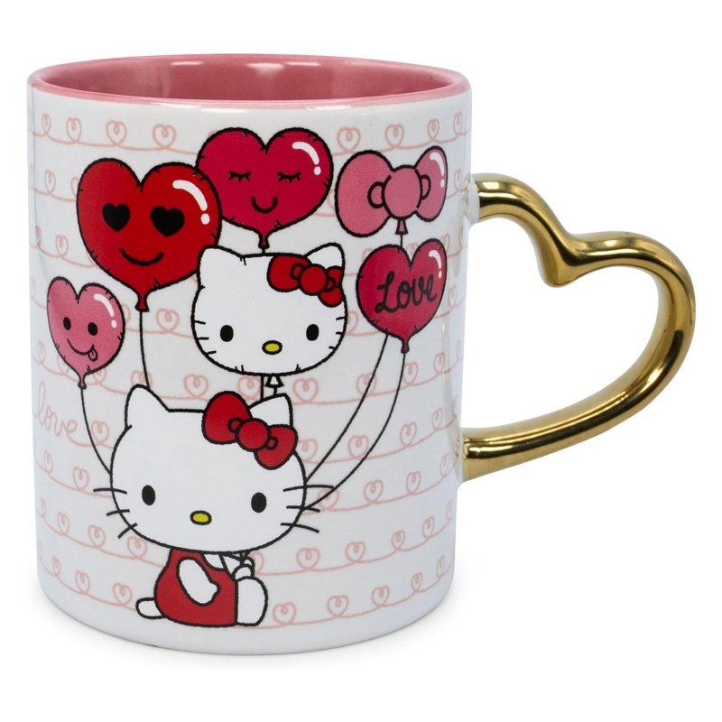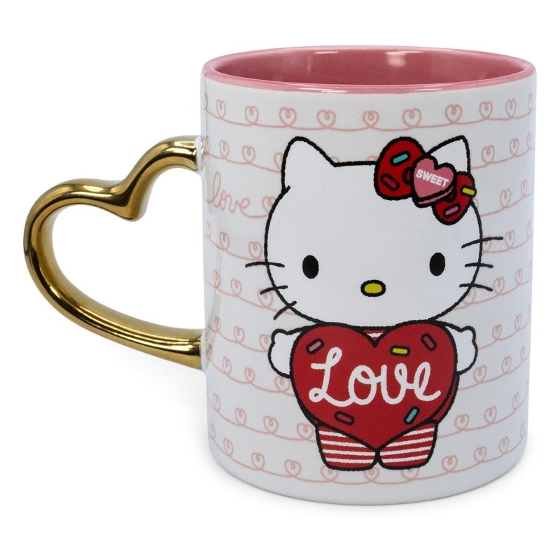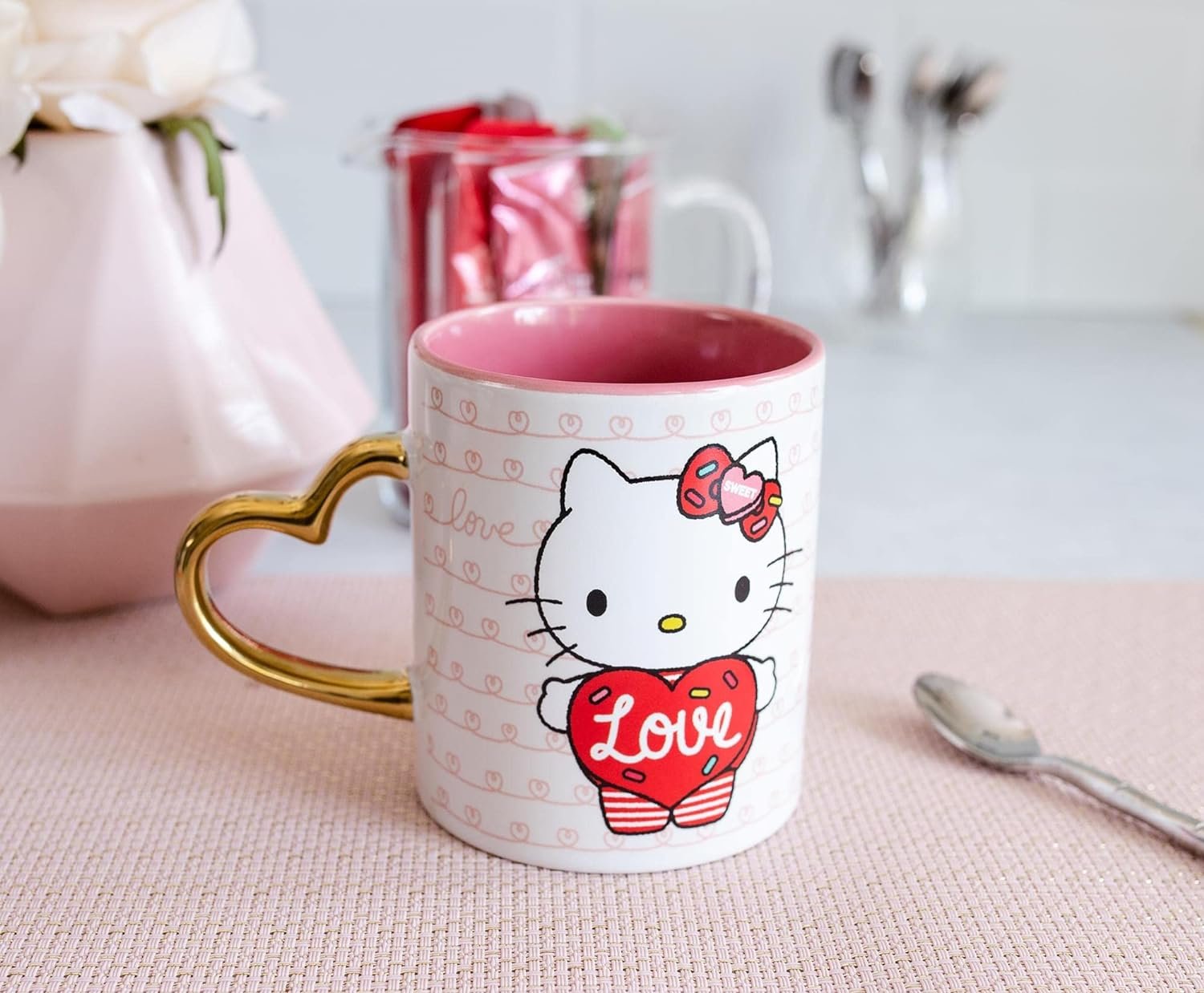 Hello Kitty Heart-Shaped Handle Ceramic Mug Large Coffee Cup Cute Pink Valentine’s Day Gifts