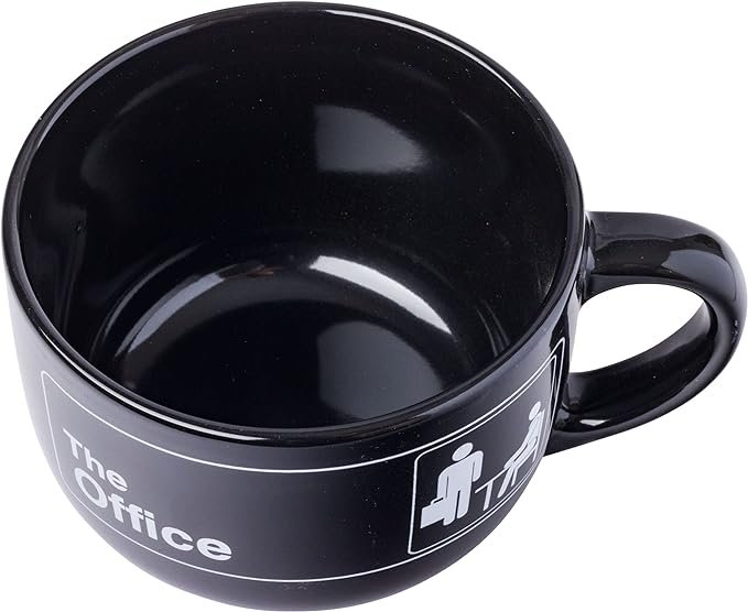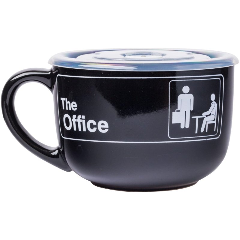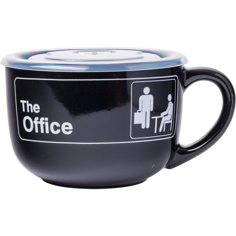 The Office Sign Ceramic Soup Mug With Vented Plastic Lid Black Mug With Handle