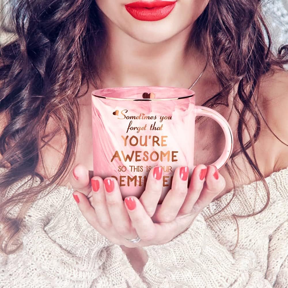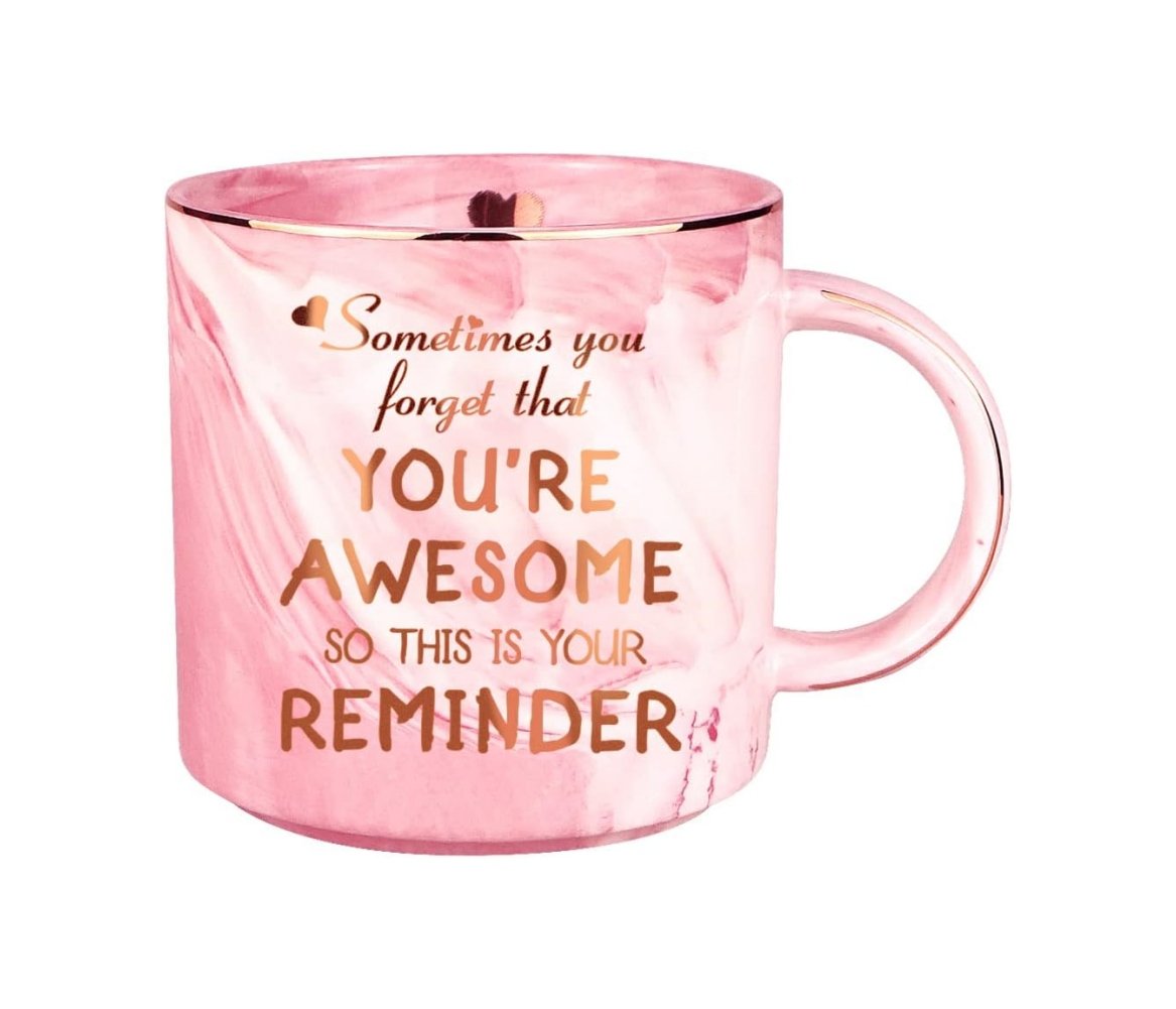 You Are Awesome Ceramic Mug For Valentines Day, Pink Marble Coffee Cup With Handle